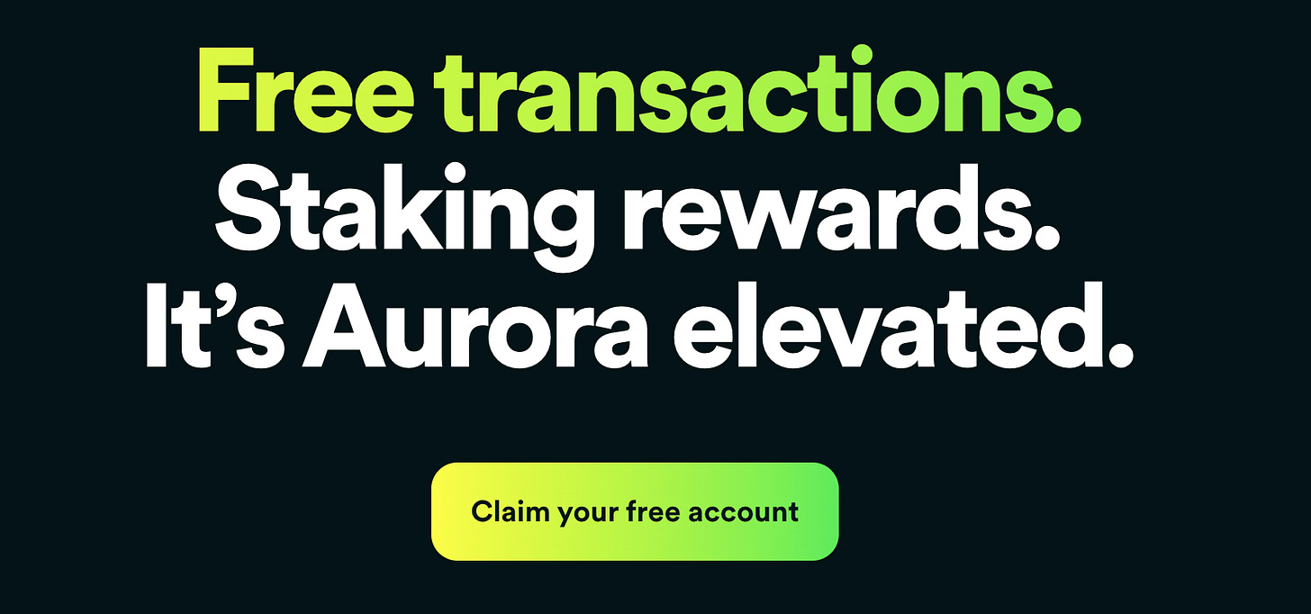 Aurora Plus https://aurora.plus/r/76d10c3d (if you sign up with my link and stake 100 AURORA, we’ll both get 10 AURORA)