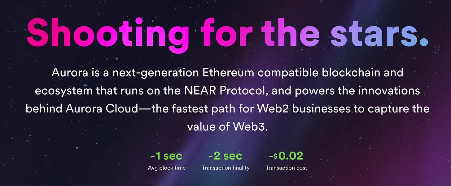 Aurora expands on NEAR’s ecosystem with EVM-based applications; allowing applications running in Aurora to easily interact with other apps in NEAR.