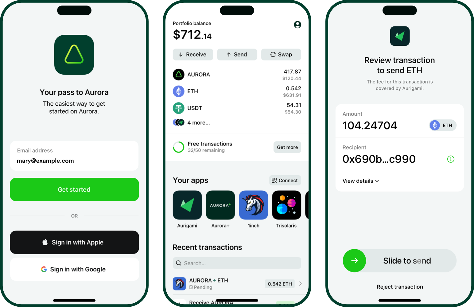 With Aurora+, you don’t even need any ETH in wallet to get started. The 50 free transactions work with any project on the Aurora ecosystem.